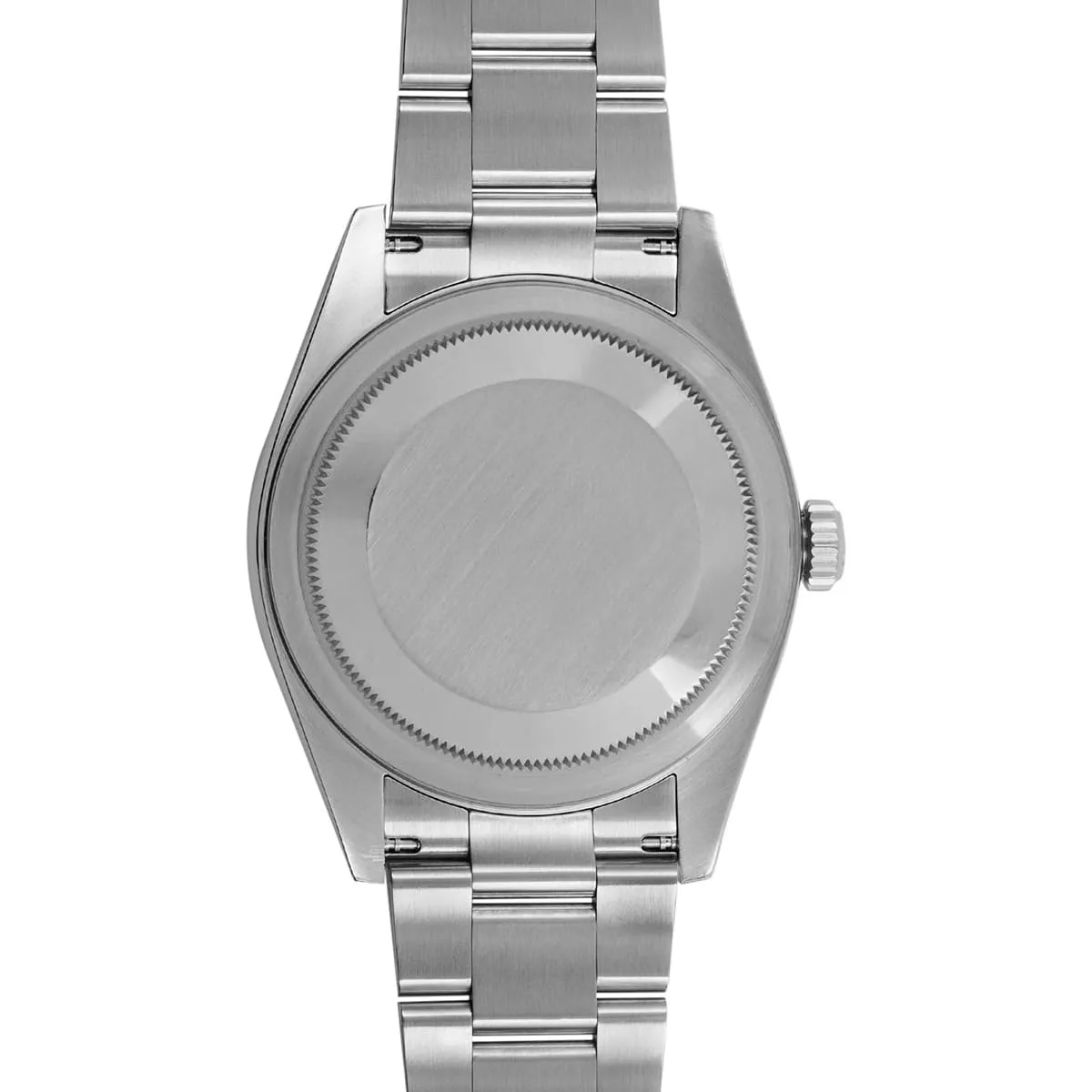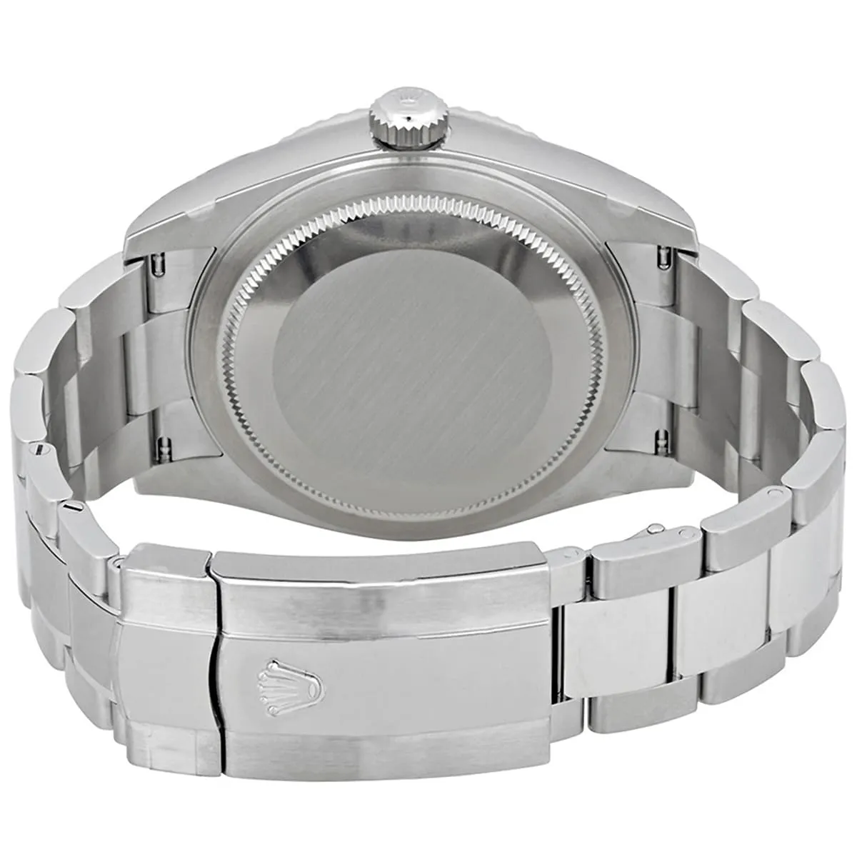 أما التصميم العام للساعة، فيجمع بين جسد معدني قوي وسوار متين يتألف من وصلات عريضة لامعة توحي بالفخامة وتمنح انسيابية استثنائية على المعصم. ويعد الإطار المسنن والشهير خاصية جمالية ووظيفية في الوقت ذاته، إذ يبرز الطابع الأيقوني لرولكس. التفاصيل الدقيقة كالإشارات البيضاء البارزة والتوزيع المتوازن للعناصر على المينا يضفيان عمقًا بصريًا يضمن سهولة القراءة والتميز في كل لحظة.