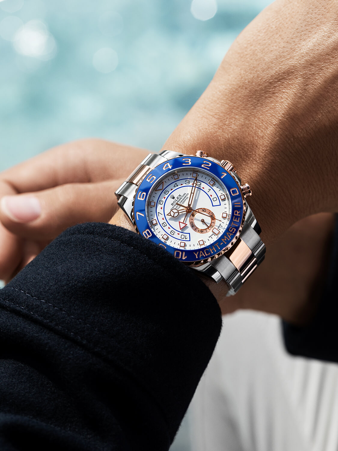 في ساعات روليكس ياخت ماستر II ميرور أوريجنال، يبرز التصميم الجانبي بكرونوغراف قوي يتيح قياس الوقت بدقة فائقة، مع أزرار جانبية مدمجة بسلاسة في الهيكل، تجعل التشغيل سهلاً وأنيقاً. السوار المزدوج اللون، الذي يجمع بين الفولاذ الفضي والذهب الوردي، يوفر راحة استثنائية على المعصم، مع روابط مصقولة تضمن متانة طويلة الأمد. هذه الساعة ليست مجرد أداة لقياس الزمن، بل هي رمز للفخامة والتميز، مصممة للرجل الذي يبحث عن الجمال في كل تفصيل. تخيلها على معصمك أثناء رحلة بحرية، حيث يلمع إطارها تحت أشعة الشمس، ويبرز قرصها الأبيض كلوحة فنية حية. مع مقاومة للماء تصل إلى أعماق مذهلة، وآلية حركة سويسرية دقيقة، تُعد هذه الساعة استثماراً يدوم لأجيال.