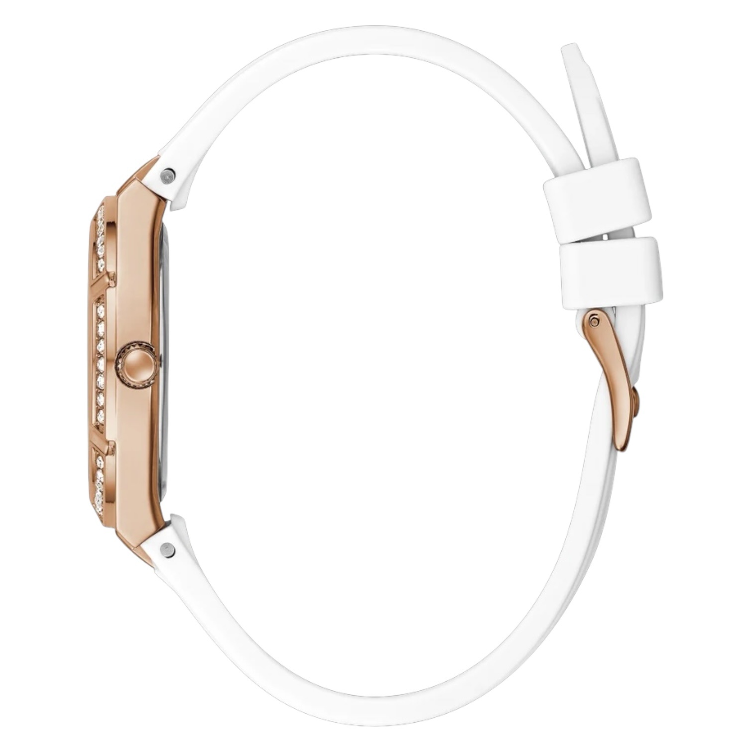 ساعة جيس Guess نسائي أصلية موديل ( كوزمو ) GW0034L2 Cosmo بلون فضي و استيك سيليكون مطاط بلون ابيض