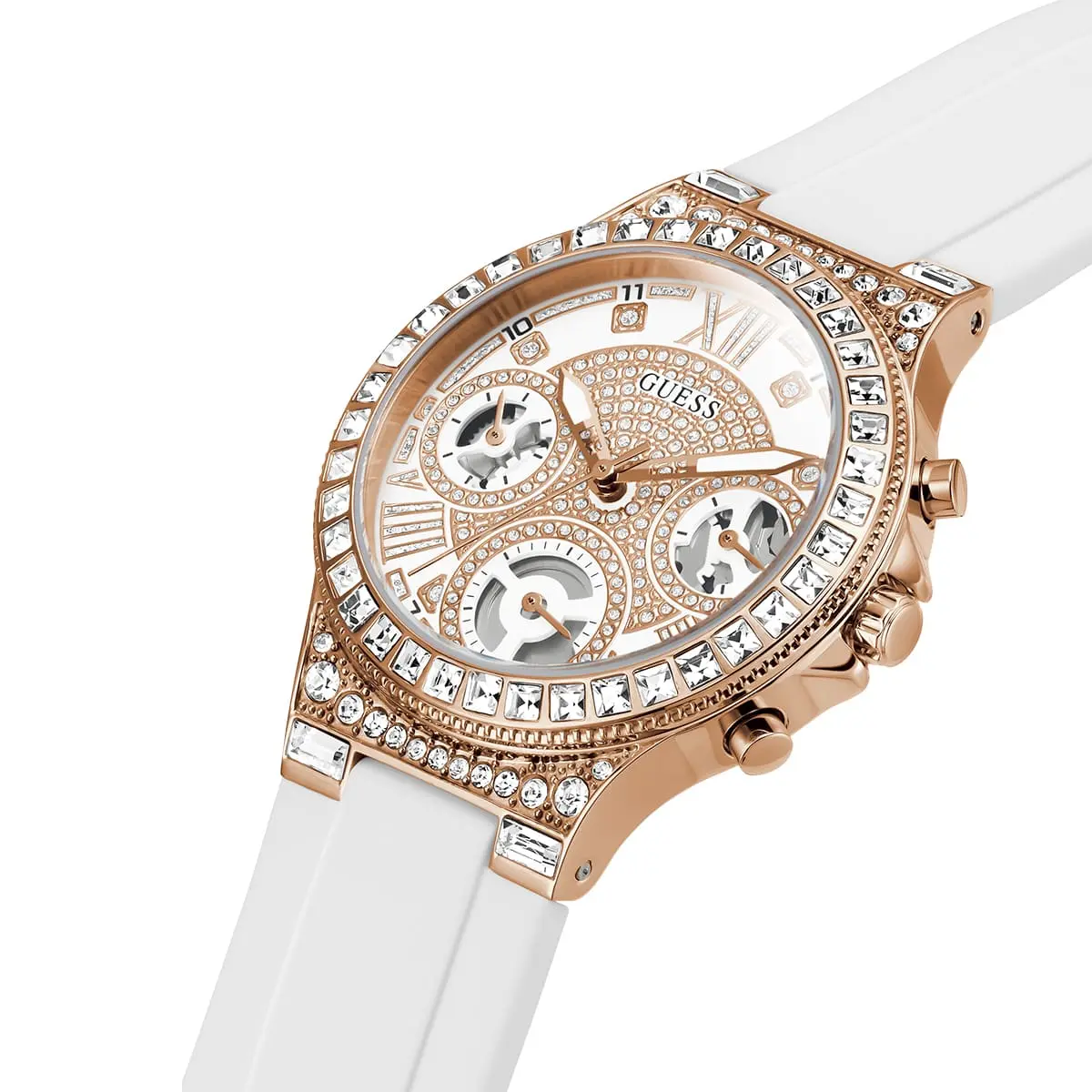 ساعة جيس Guess نسائي أصلية موديل ( مون لايت ) GW0257L2 Moonlight بلون ابيض و استيك سيليكون مطاط بلون ابيض
