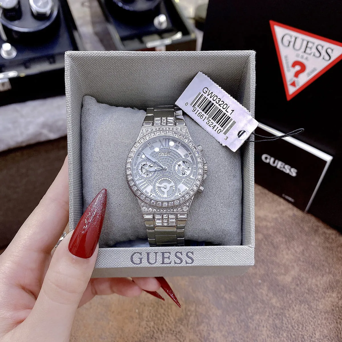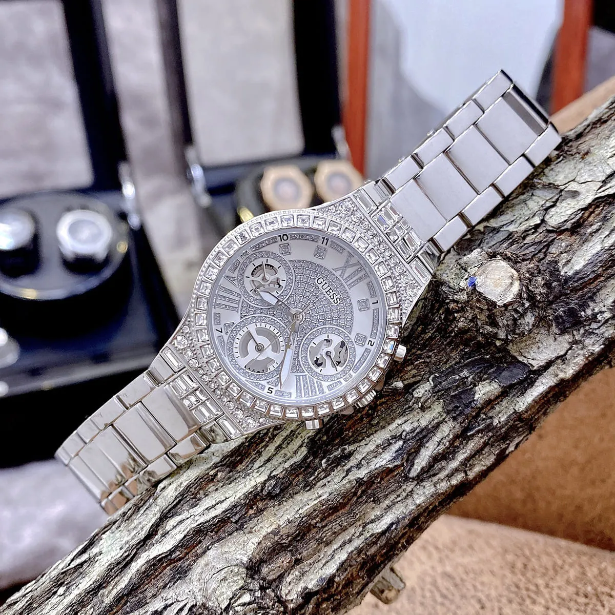 الساعة مزينة بفصوص كريستال
