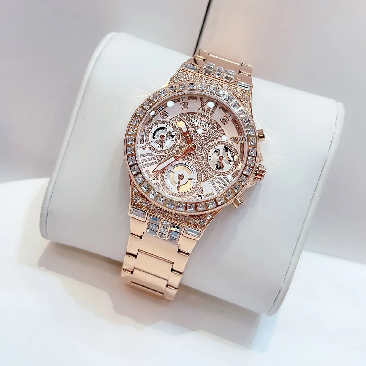 الساعة مزينة بفصوص كريستال
