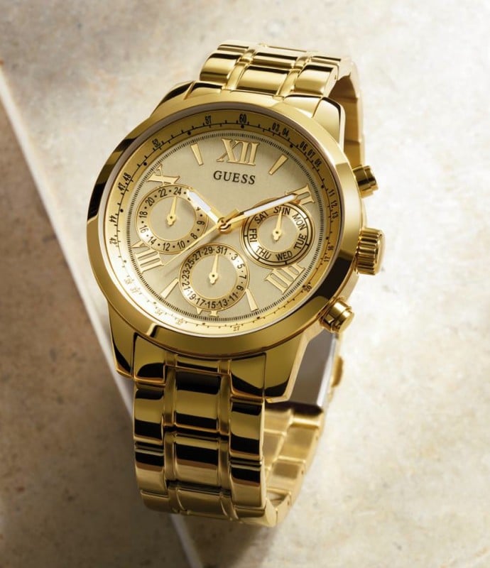 ساعة جيس للنساء اصلية موديل (صن رايز) Sunrise W0330L1 بلون ذهبي واستيك معدن بلون ذهبي