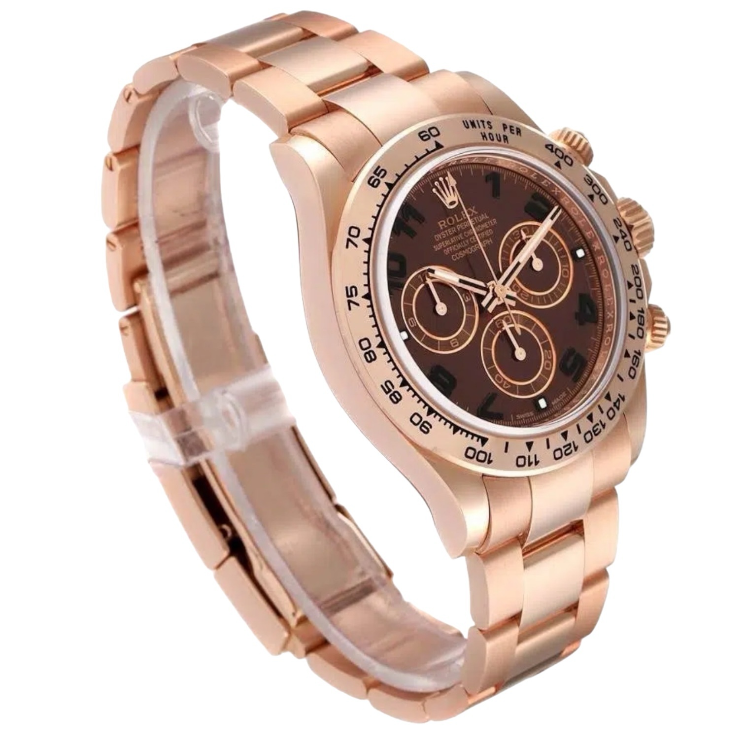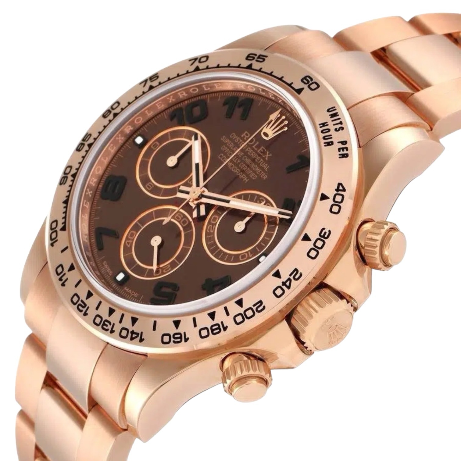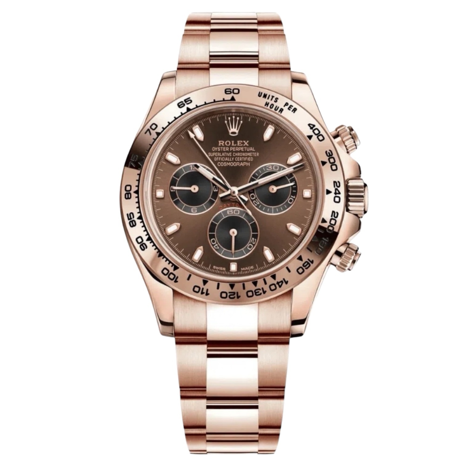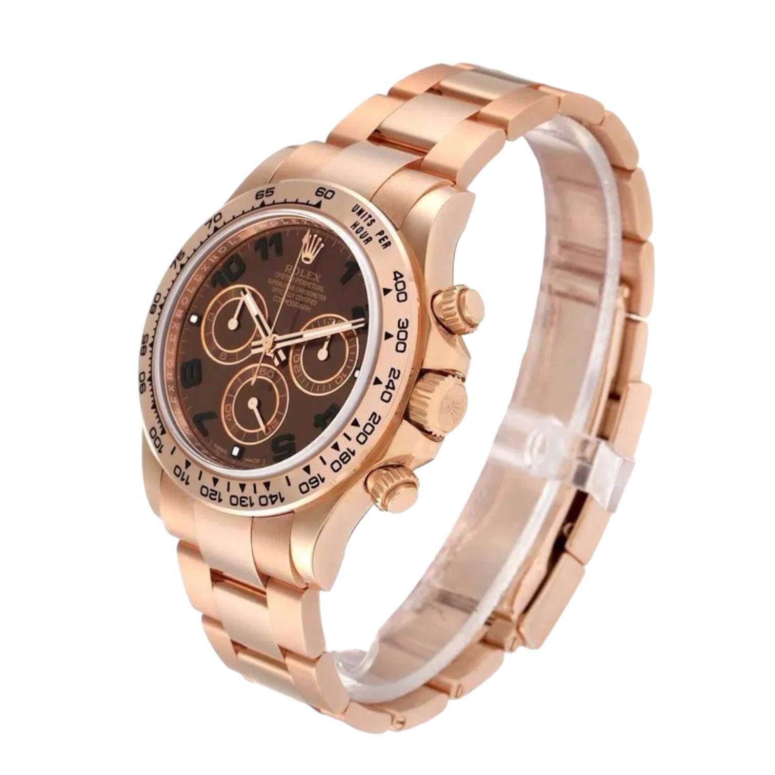 ساعة رولكس دايتونا ميرور اوريجينال هي تجسيد مذهل للفخامة الراقية، حيث يلتقي التصميم العصري بالتقنيات الدقيقة لصناعة الساعات. تمنحك هذه الساعة حضوراً مميزاً بفضل لونها الذهبي الوردي البراق الذي يعكس الضوء بطريقة تخطف الأنظار وتمنح معصمك إشراقة لا مثيل لها. يبرز الإطار المحفور بأرقام واضحة وأنيقة الطابع الرياضي الفاخر لهذا الإصدار، مما يجعله مثالياً لمحبي التفرد والتميز في كل مناسبة.