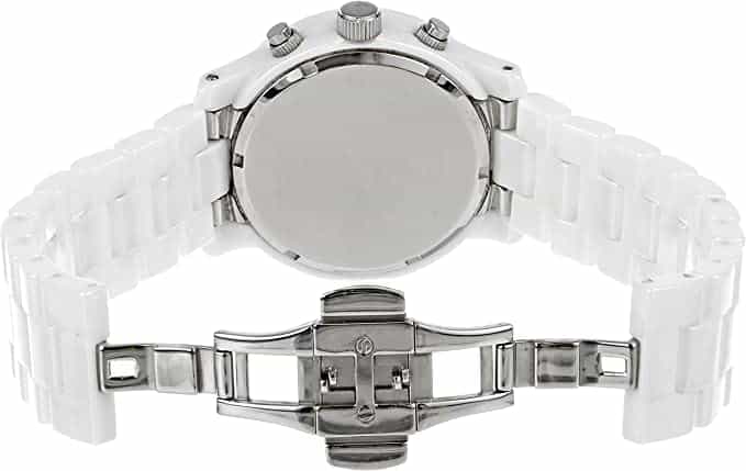 تتميز ساعة مايكل كورس MK5161 الكلاسيكية النسائية بقرص كرونوغراف أبيض ونافذة تاريخ وثلاث فروعات وسوار من السيراميك وجراب مستدير.
