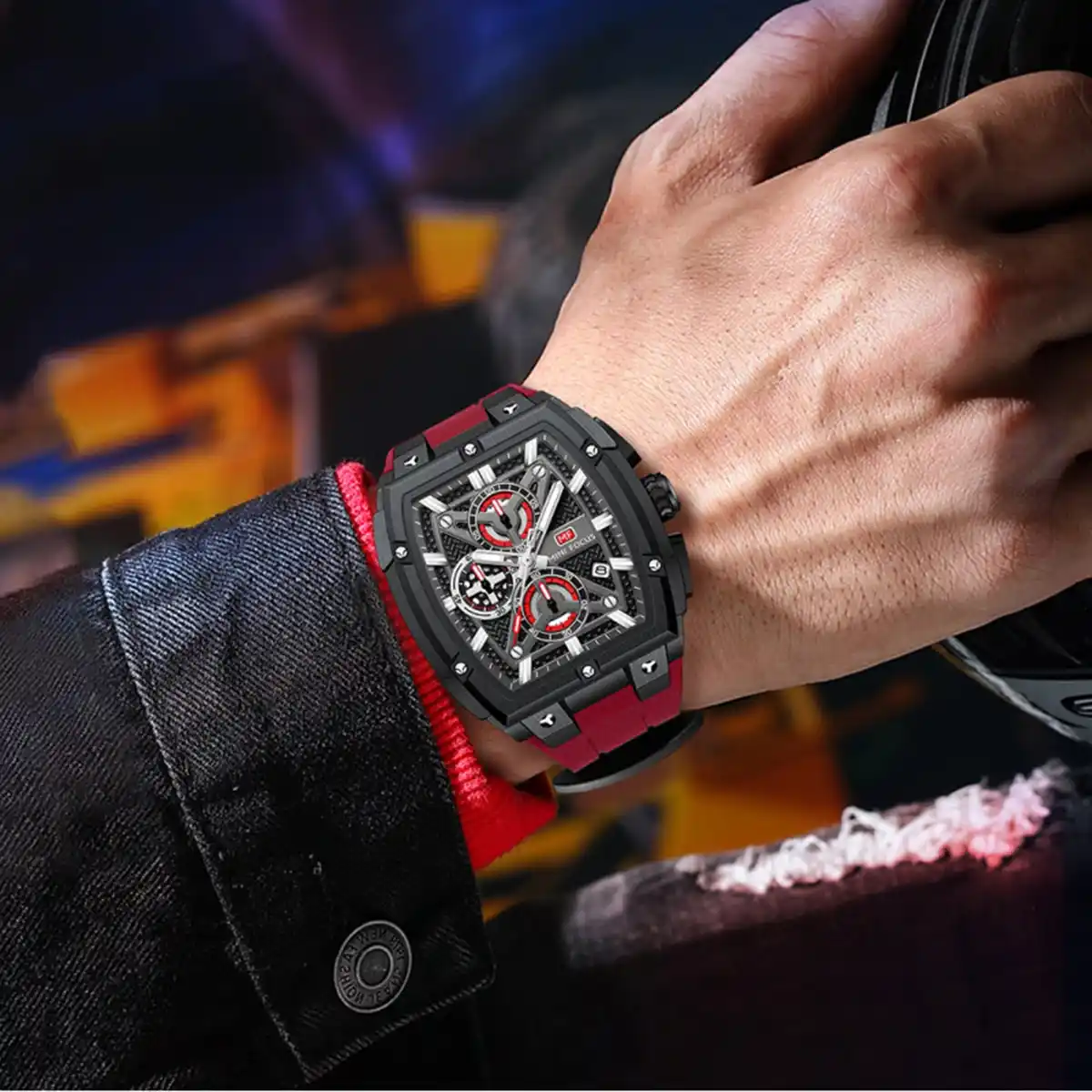 بلون اسود و استيك سيليكون مطاط بلون احمر