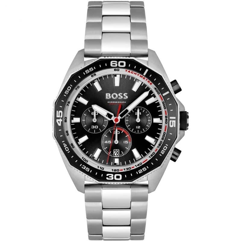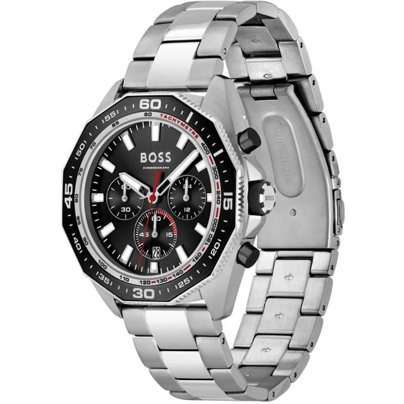 ساعة هوغو بوس للرجال اصلية موديل (انرجي) Energy 1513971 بلون اسود واستيك ستانلس ستيل فضي
