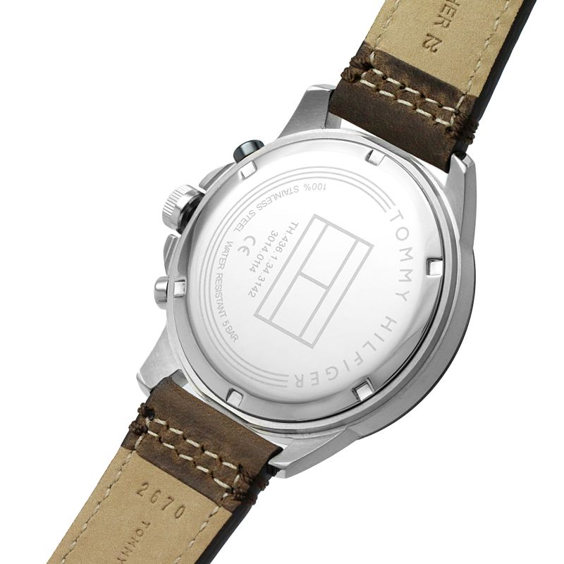 ساعة تومي هيلفيغر رجالي أصلية موديل (هاري) Harley 1791895 بلون ازرق و استيك جلد بلون بني