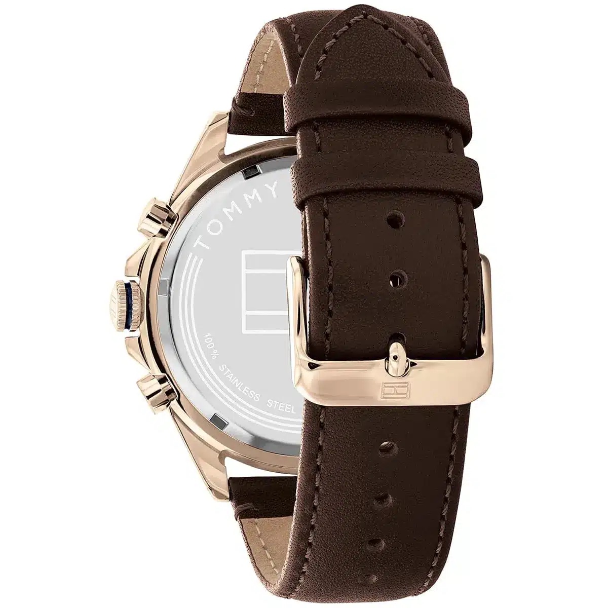 ساعة تومي هيلفيغر Tommy Hilfiger رجالي أصلية موديل (أوين) 1791966 Owen بلون ابيض و استيك جلد طبيعي بلون بني
