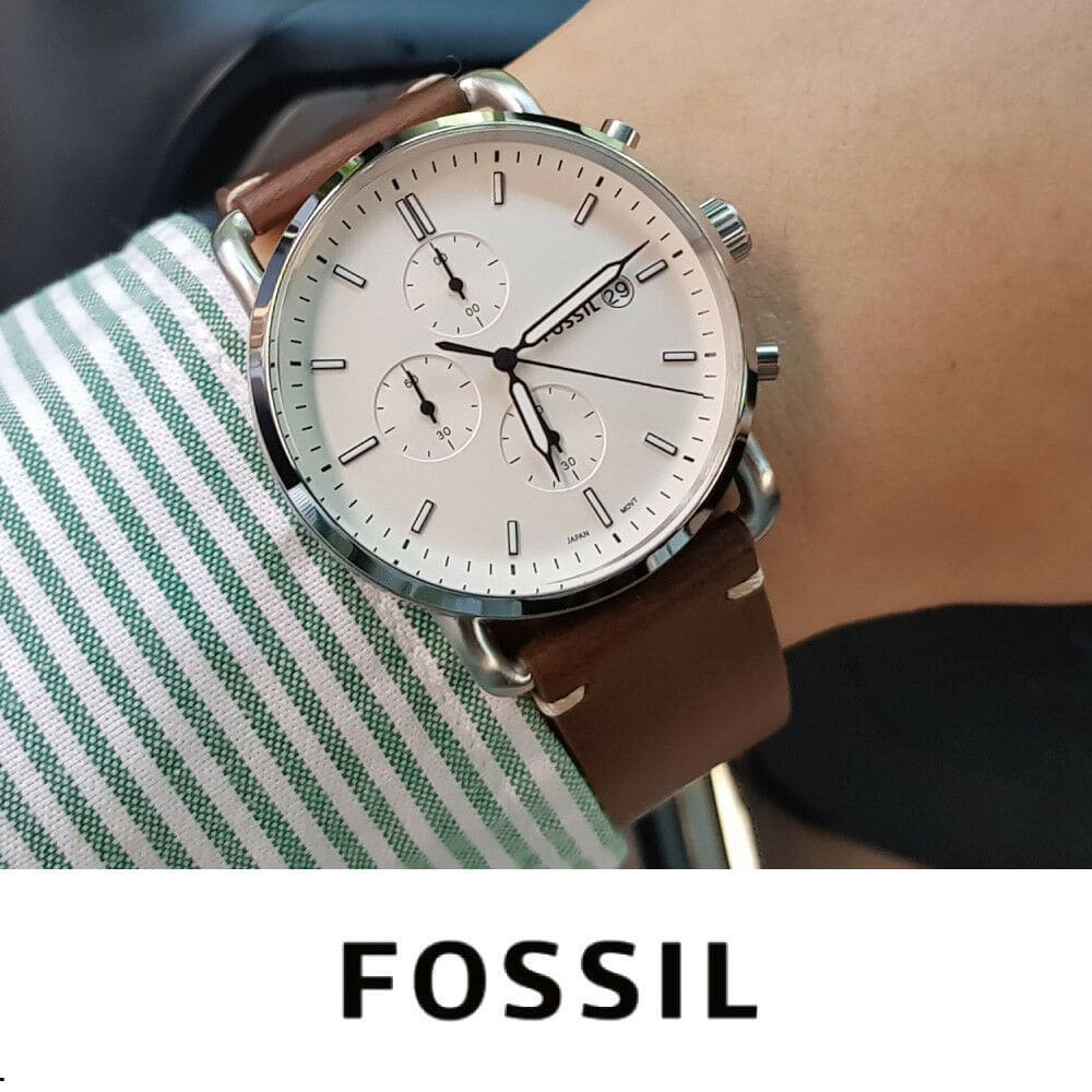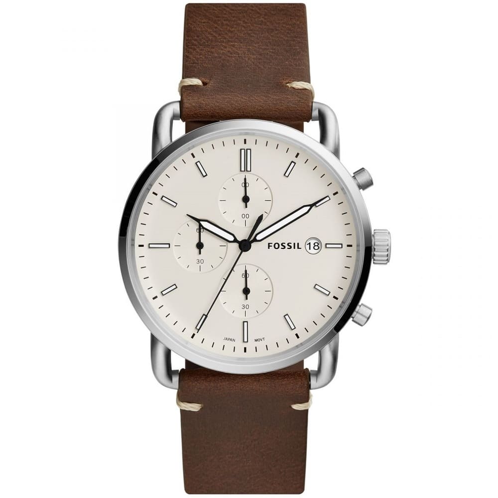 ساعة فوسيل للرجال اصلية موديل (كوميوتر) The Commuter FS5402 بلون ابيض واستيك جلد بلون بني