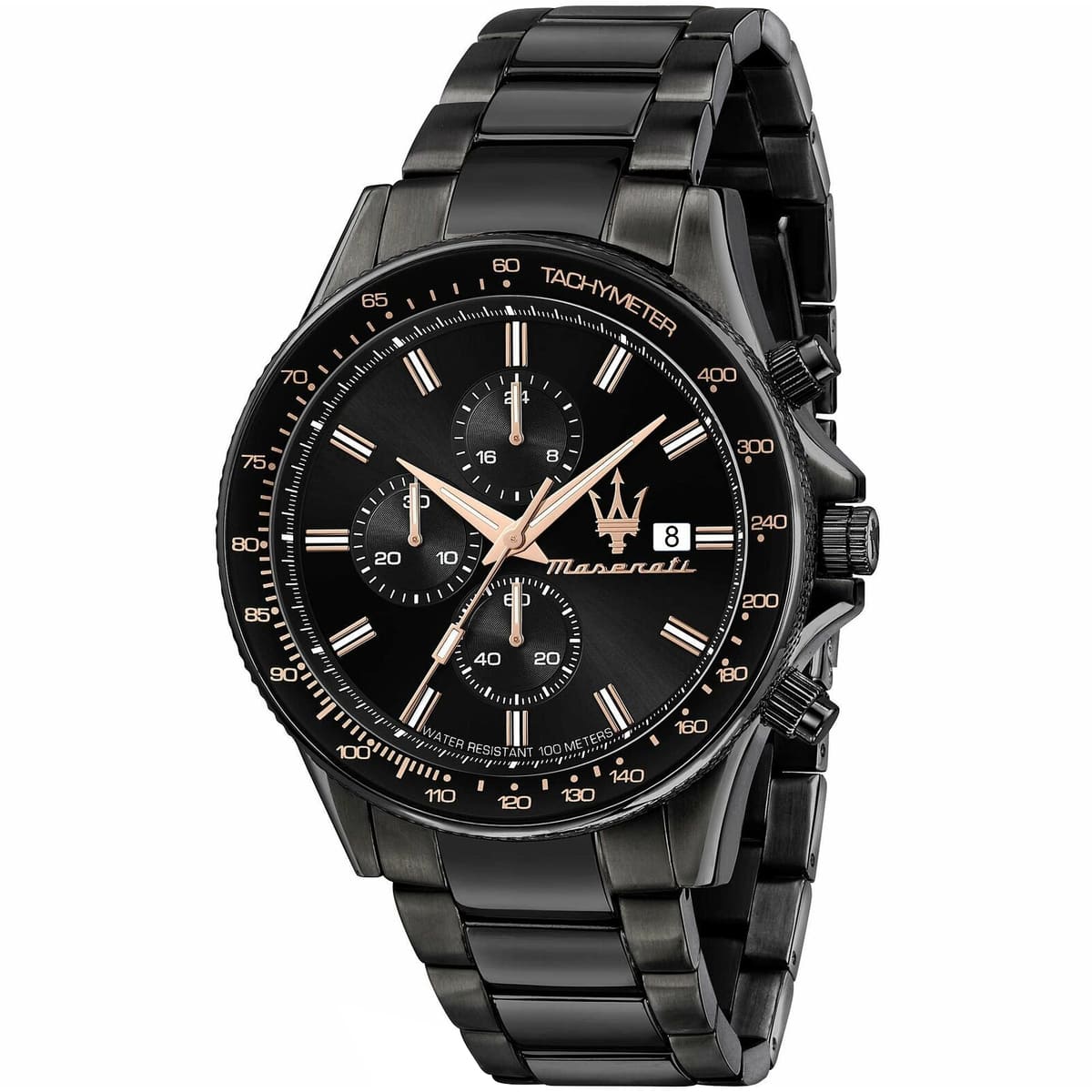 ساعة مازيراتي رجالي أصلية موديل (سفيدا) R8873640011 Sfida بلون اسود و استيك معدن ستانلس ستيل بلون اسود